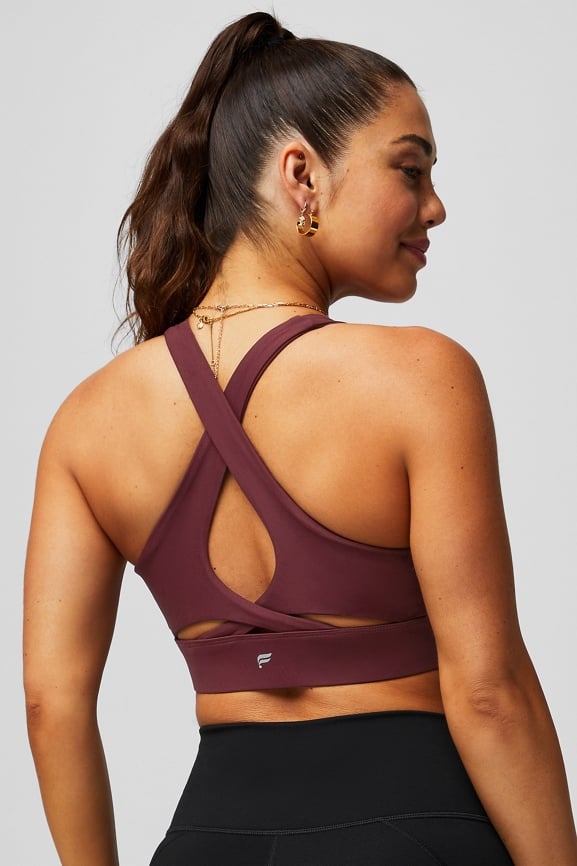 In our Burgundy colorway bra and classic black legging, this set features an internal pocket on the front waistband of our famous, ultimate hold legging for a hands-free, head-turning workout look.