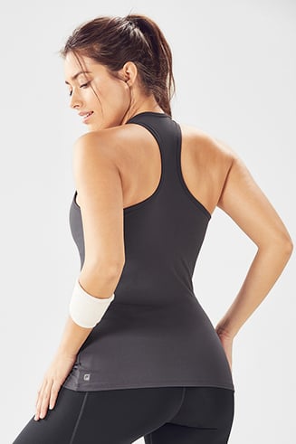 Say hello to your new training tank that gets down to business, thanks to its breathable cutout design, built-in bra and moisture-control fabric.