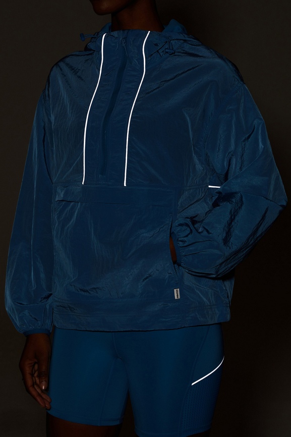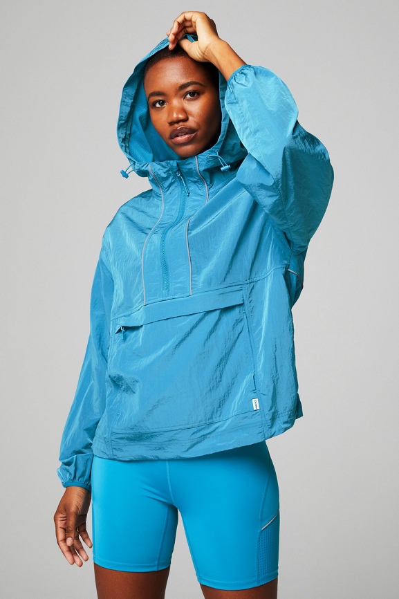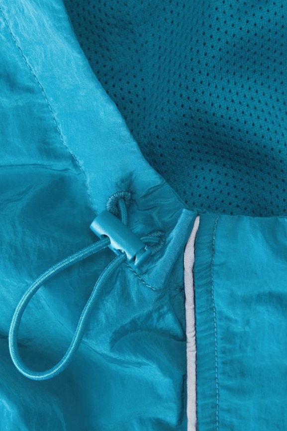 Your new throw-on-and-go fave (nature not required). Hiking or headed to the gym, this lightweight jacket is a must. It's crafted in iridescent, water and wind-repellant Shimmer Nylon fabric, with reflective details, adjustable hem, and kangaroo pocke